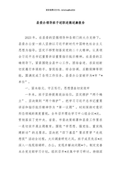 / 【七哥公文】2024年:县委办领导班子述职述德述廉报告+更多免费公文+VX:QiGeGongWen2024