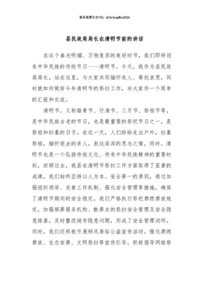 / 【七哥公文】2024年:县民政局局长在清明节前的讲话+更多免费公文+VX:QiGeGongWen2024