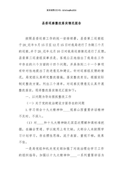 / 【七哥公文】2024年:县委巡察整改落实情况报告+更多免费公文+VX:QiGeGongWen2024