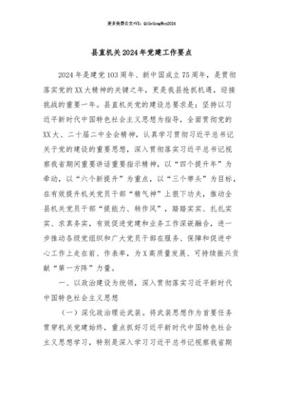 / 【七哥公文】2024年:县直机关2024年党建工作要点+更多免费公文+VX:QiGeGongWen2024