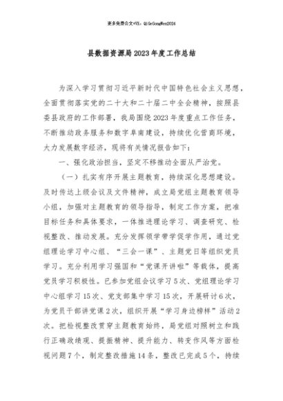 / 【七哥公文】2024年:县数据资源局2023年度工作总结+更多免费公文+VX:QiGeGongWen2024