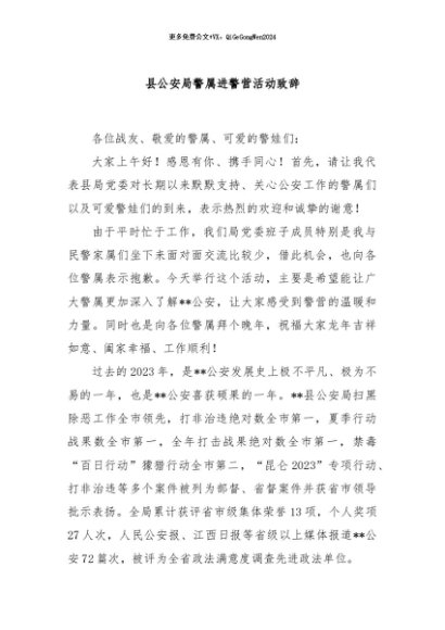 / 【七哥公文】2024年:县公安局警属进警营活动致辞+更多免费公文+VX:QiGeGongWen2024