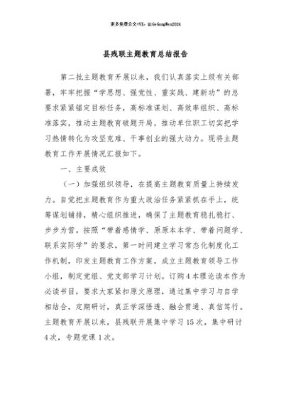 / 【七哥公文】2024年:县残联主题教育总结报告+更多免费公文+VX:QiGeGongWen2024