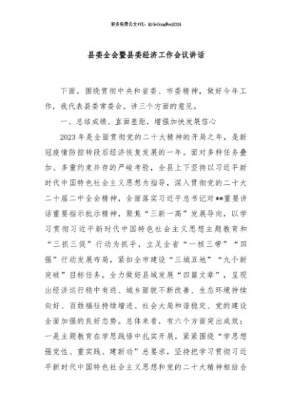 / 【七哥公文】2024年:县委全会暨县委经济工作会议讲话+更多免费公文+VX:QiGeGongWen2024