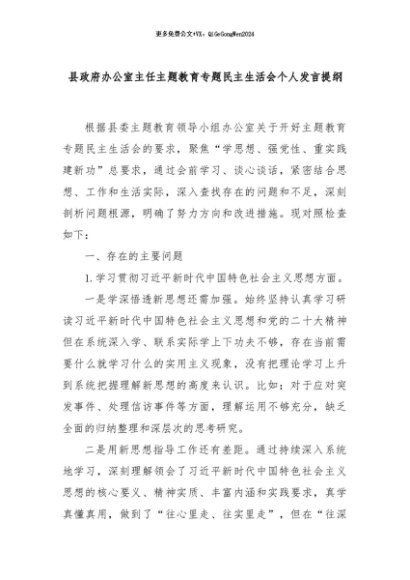 【七哥公文】2024年:县政府办公室主任主题教育专题民主生活会个人发言提纲+更多免费公文+VX:QiGeGongWen2024