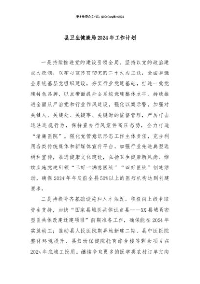 / 【七哥公文】2024年:县卫生健康局2024年工作计划+更多免费公文+VX:QiGeGongWen2024