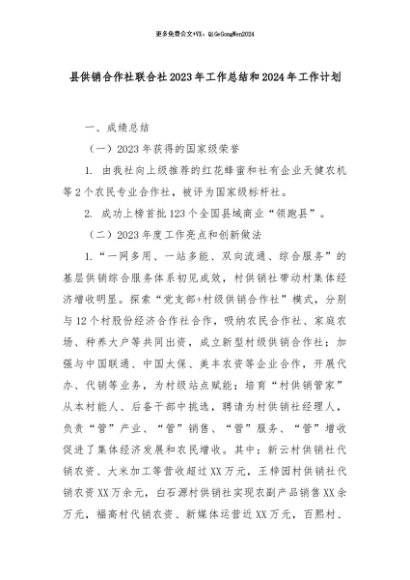 【七哥公文】2024年:县供销合作社联合社2023年工作总结和2024年工作计划+更多免费公文+VX:QiGeGongWen2024