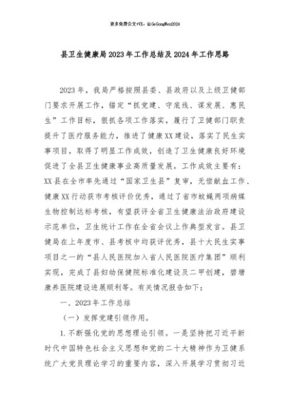 【七哥公文】2024年:县卫生健康局2023年工作总结及2024年工作思路+更多免费公文+VX:QiGeGongWen2024