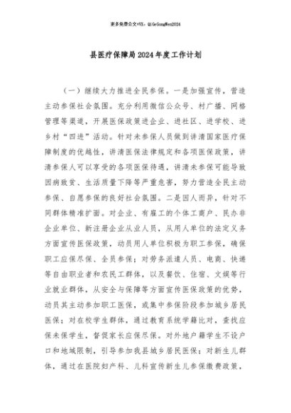 / 【七哥公文】2024年:县医疗保障局2024年度工作计划+更多免费公文+VX:QiGeGongWen2024