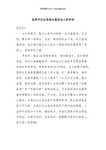 / 【七哥公文】2024年:县委书记在县委办座谈会上的讲话+更多免费公文+VX:QiGeGongWen2024