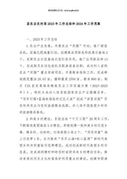 【七哥公文】2024年:县农业农村局2023年工作总结和2024年工作思路+更多免费公文+VX:QiGeGongWen2024