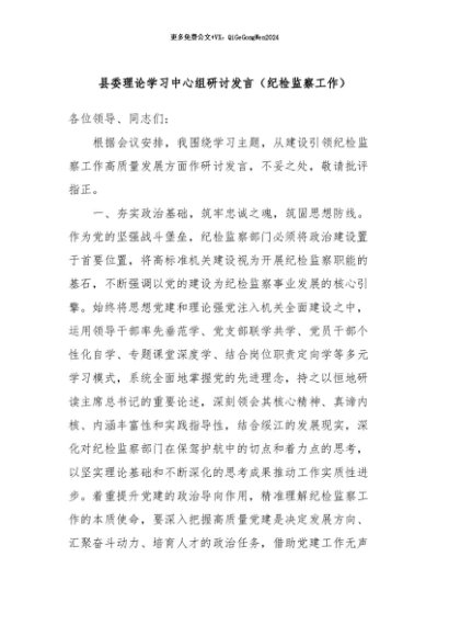 / 【七哥公文】2024年:县委理论学习中心组研讨发言(纪检监察工作)+更多免费公文+VX:QiGeGongWen2024