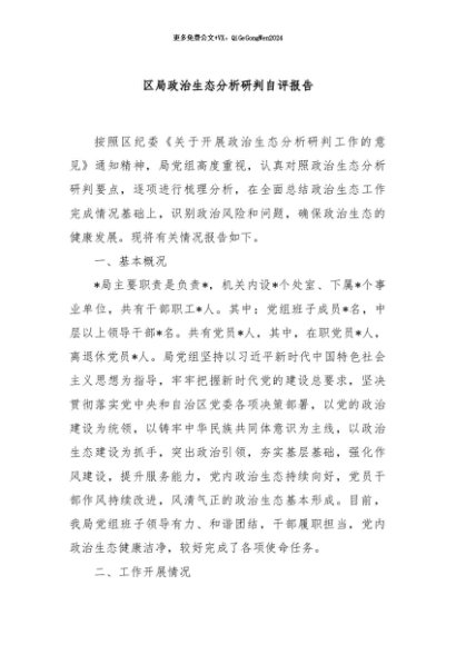 / 【七哥公文】2024年:区局政治生态分析研判自评报告+更多免费公文+VX:QiGeGongWen2024