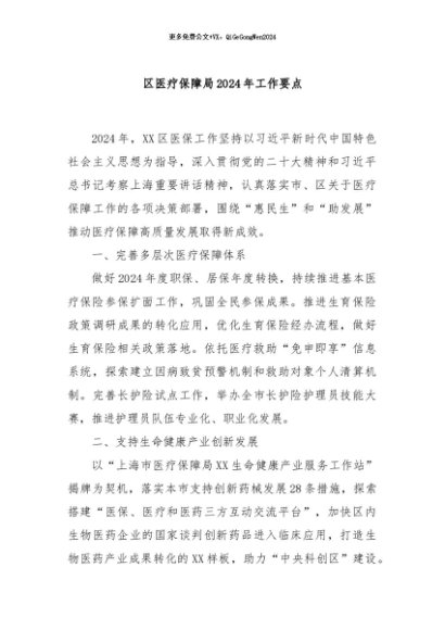 / 【七哥公文】2024年:区医疗保障局2024 年工作要点+更多免费公文+VX:QiGeGongWen2024