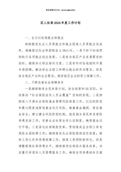 / 【七哥公文】2024年:区人社局2024年度工作计划+更多免费公文+VX:QiGeGongWen2024