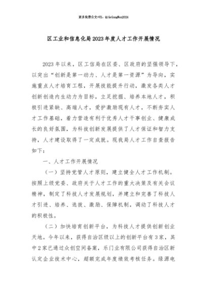 / 【七哥公文】2024年:区工业和信息化局2023年度人才工作开展情况+更多免费公文+VX:QiGeGongWen2024