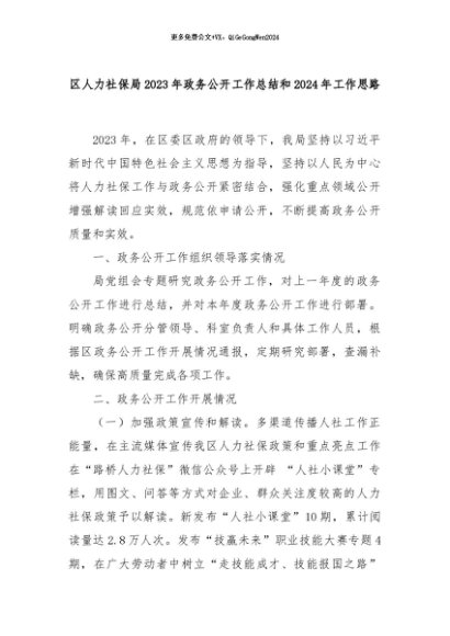 【七哥公文】2024年:区人力社保局2023年政务公开工作总结和2024年工作思路+更多免费公文+VX:QiGeGongWen2024