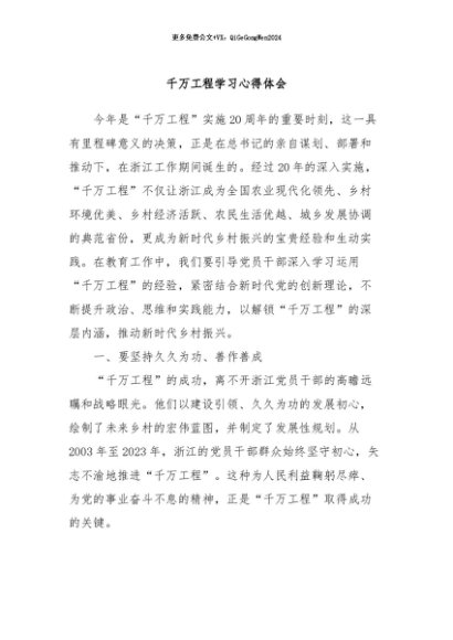 / 【七哥公文】2024年:千万工程学习心得体会+更多免费公文+VX:QiGeGongWen2024