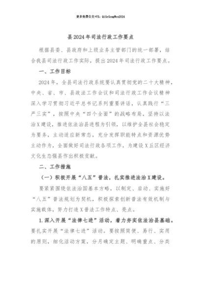 / 【七哥公文】2024年:县2024年司法行政工作要点+更多免费公文+VX:QiGeGongWen2024