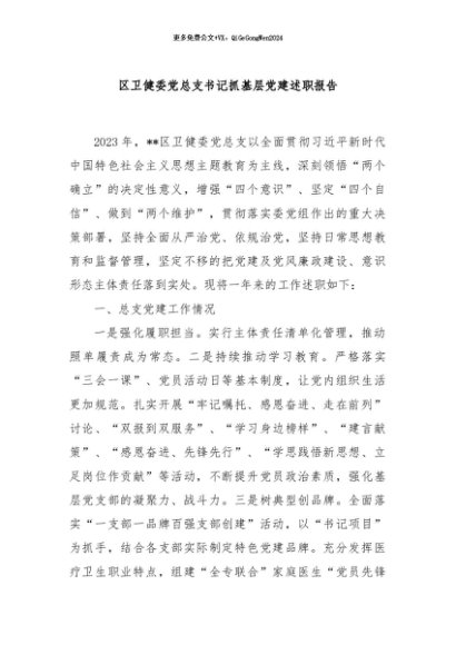 / 【七哥公文】2024年:区卫健委党总支书记抓基层党建述职报告+更多免费公文+VX:QiGeGongWen2024