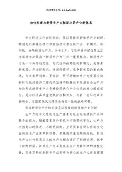 / 【七哥公文】2024年:加快构建与新质生产力相适应的产业新体系+更多免费公文+VX:QiGeGongWen2024