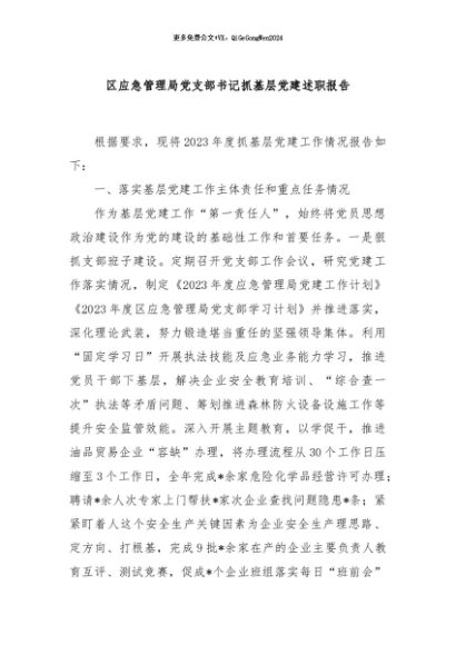 / 【七哥公文】2024年:区应急管理局党支部书记抓基层党建述职报告+更多免费公文+VX:QiGeGongWen2024