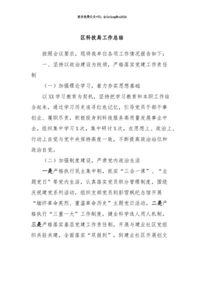 / 【七哥公文】2024年:区科技局工作总结+更多免费公文+VX:QiGeGongWen2024