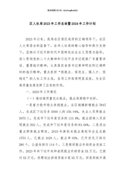 / 【七哥公文】2024年:区人社局2023年工作总结暨2024年工作计划+更多免费公文+VX:QiGeGongWen2024