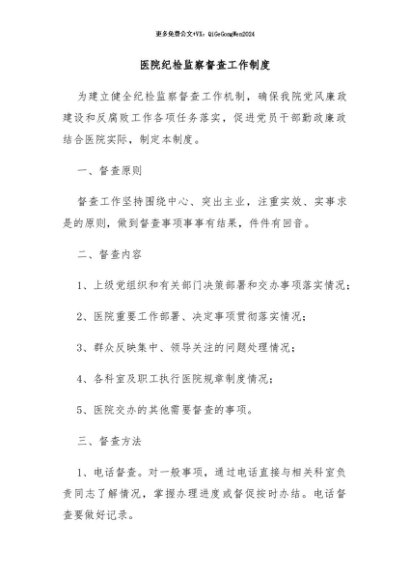/ 【七哥公文】2024年:医院纪检监察督查工作制度+更多免费公文+VX:QiGeGongWen2024