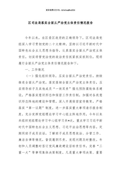 / 【七哥公文】2024年:区司法局落实全面从严治党主体责任情况报告+更多免费公文+VX:QiGeGongWen2024