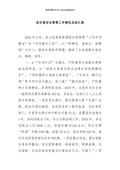 / 【七哥公文】2024年:县交通安全管理工作情况总结汇报+更多免费公文+VX:QiGeGongWen2024