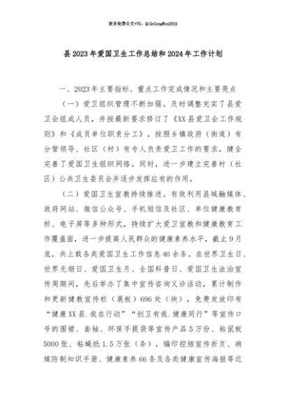 / 【七哥公文】2024年:县2023年爱国卫生工作总结和2024年工作计划+更多免费公文+VX:QiGeGongWen2024