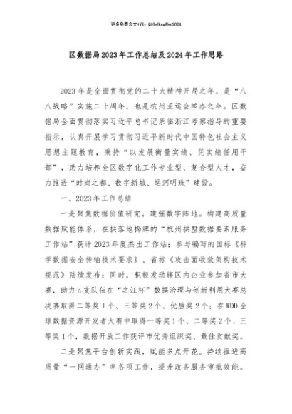 / 【七哥公文】2024年:区数据局2023年工作总结及2024年工作思路+更多免费公文+VX:QiGeGongWen2024