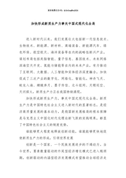 / 【七哥公文】2024年:加快形成新质生产力事关中国式现代化全局+更多免费公文+VX:QiGeGongWen2024