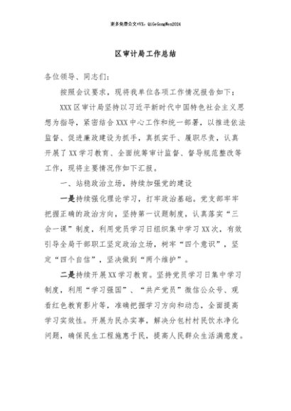 / 【七哥公文】2024年:区审计局工作总结+更多免费公文+VX:QiGeGongWen2024
