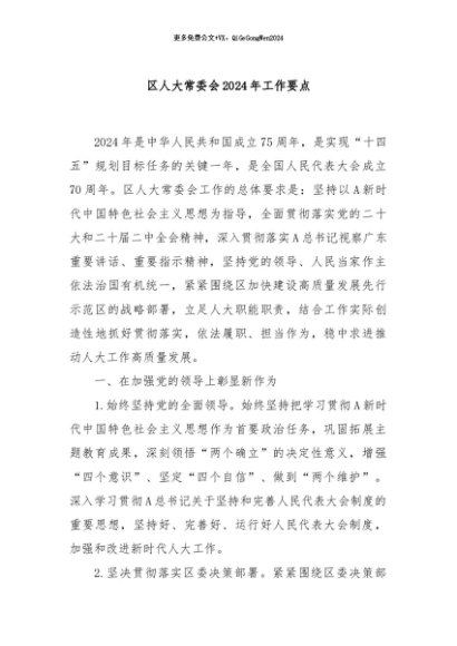 / 【七哥公文】2024年:区人大常委会2024年工作要点+更多免费公文+VX:QiGeGongWen2024