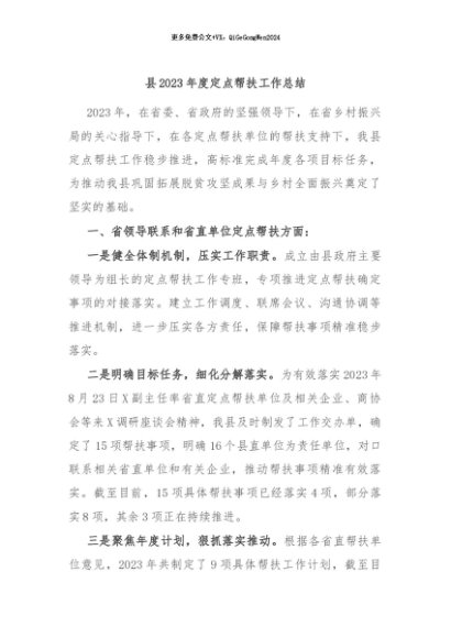 / 【七哥公文】2024年:县2023年度定点帮扶工作总结+更多免费公文+VX:QiGeGongWen2024