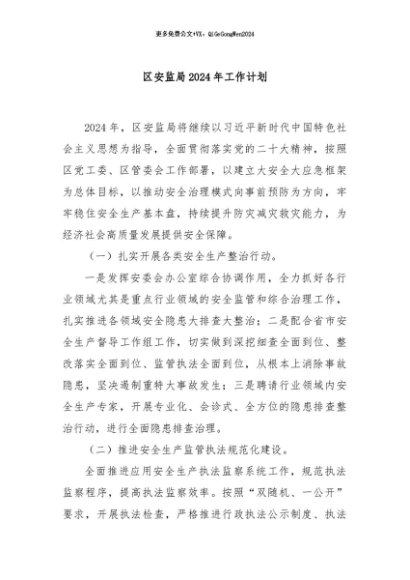 / 【七哥公文】2024年:区安监局2024年工作计划+更多免费公文+VX:QiGeGongWen2024