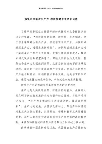 / 【七哥公文】2024年:加快形成新质生产力 积极构建未来竞争优势+更多免费公文+VX:QiGeGongWen2024