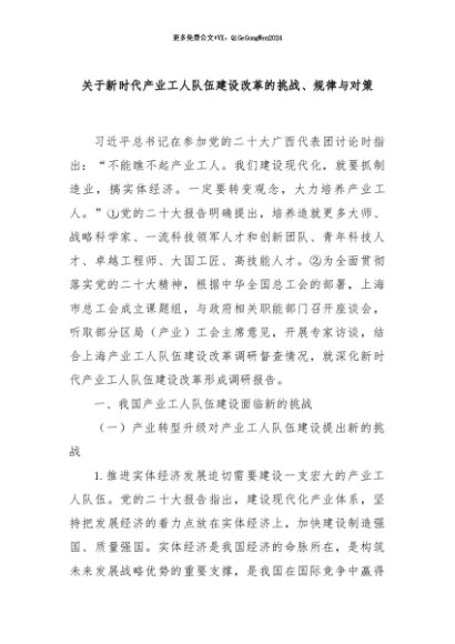 / 【七哥公文】2024年:关于新时代产业工人队伍建设改革的挑战、规律与对策+更多免费公文+VX:QiGeGongWen2024