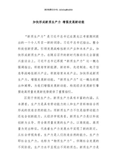 / 【七哥公文】2024年:加快形成新质生产力 增强发展新动能+更多免费公文+VX:QiGeGongWen2024