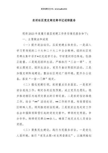 / 【七哥公文】2024年:农村社区党支部支部书记述职报告+更多免费公文+VX:QiGeGongWen2024