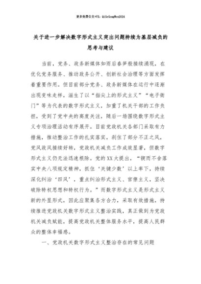 【七哥公文】2024年:关于进一步解决数字形式主义突出问题持续为基层减负的思考与建议+更多免费公文+VX:QiGeGongWen2024