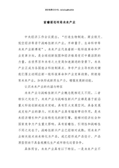 【七哥公文】2024年:前瞻谋划布局未来产业+更多免费公文+VX:QiGeGongWen2024