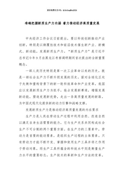 【七哥公文】2024年:准确把握新质生产力内涵 着力推动经济高质量发展+更多免费公文+VX:QiGeGongWen2024
