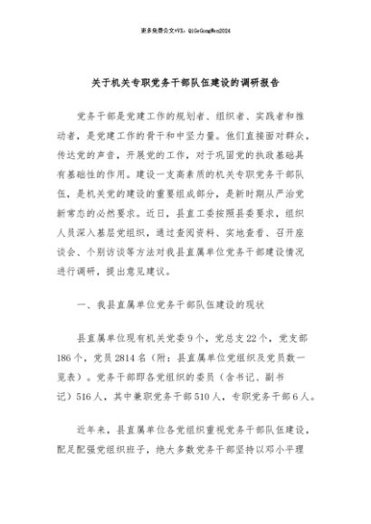 / 【七哥公文】2024年:关于机关专职党务干部队伍建设的调研报告+更多免费公文+VX:QiGeGongWen2024