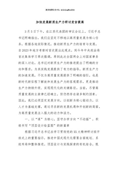 / 【七哥公文】2024年:加快发展新质生产力研讨发言提高+更多免费公文+VX:QiGeGongWen2024