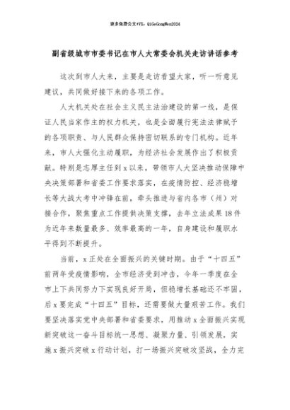 / 【七哥公文】2024年:副省级城市市委书记在市人大常委会机关走访讲话参考+更多免费公文+VX:QiGeGongWen2024