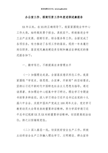 【七哥公文】2024年:办公室工作、招商引资工作年度述职述廉报告+更多免费公文+VX:QiGeGongWen2024