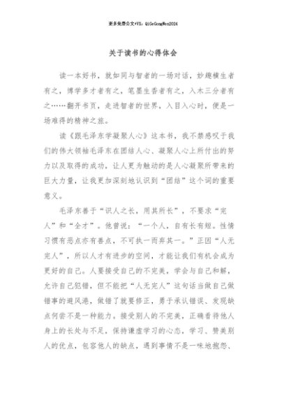【七哥公文】2024年:关于读书的心得体会+更多免费公文+VX:QiGeGongWen2024